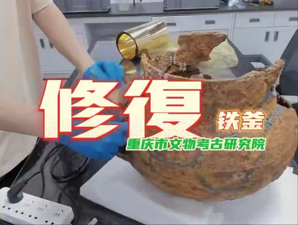 该视频描述了修复铁釜的过程